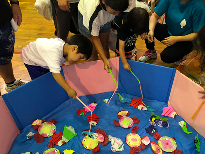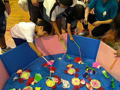 魚釣りゲーム・・子どもたちが作った素敵な作品を釣って「とったど~」と大喜びでした