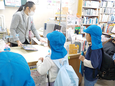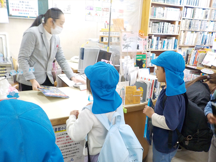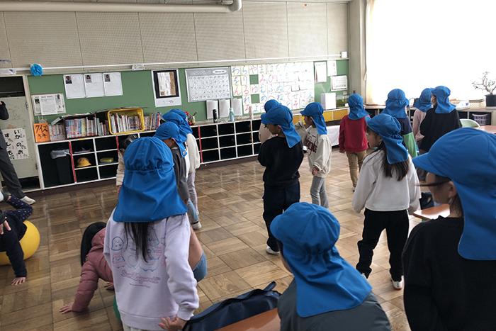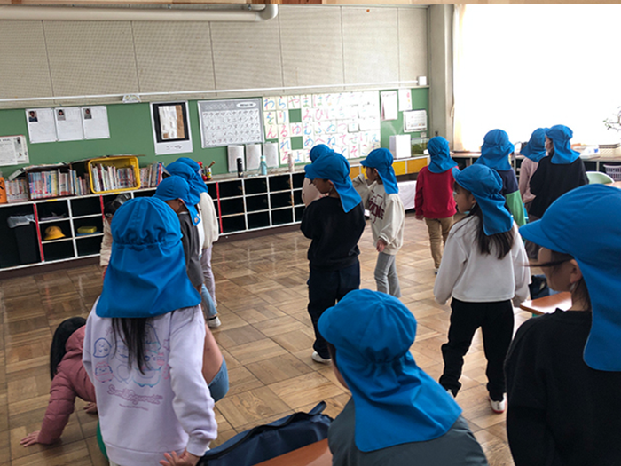 近くの第7小学校に5歳児が行きました。1年生が縄跳びを披露してくれたり、学校を案内してくれました。