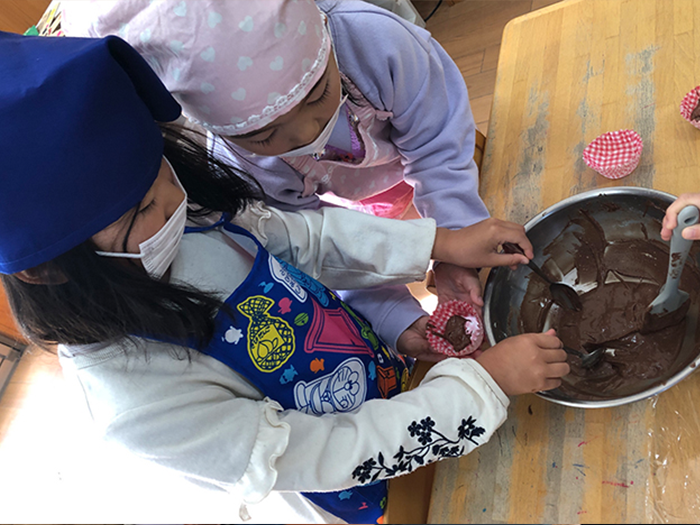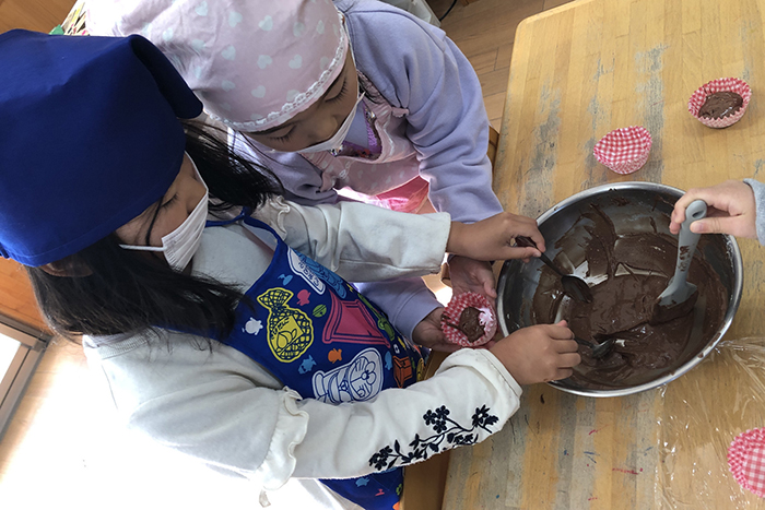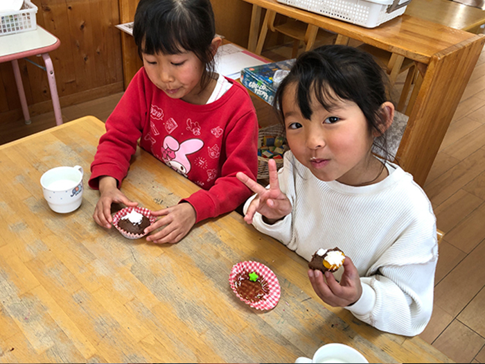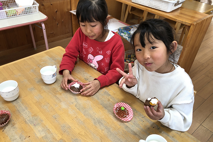 焼きあがったカップケーキにトッピング・・・かわいくて、おいしいカップケーキが完成しました。