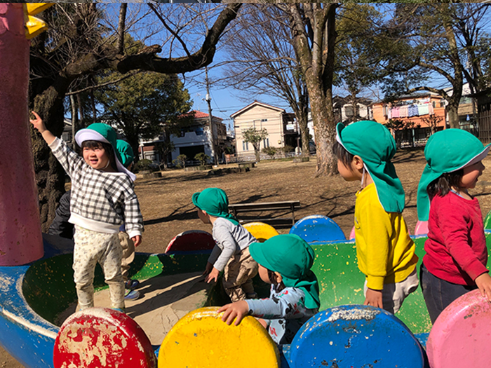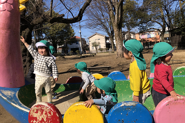 1歳児がわかぐさ公園へ・・・・初めて、保育園のバスに乗って大喜び。公園の遊具でもたくさんあそびました。