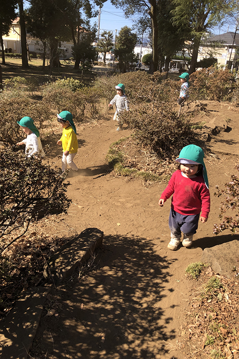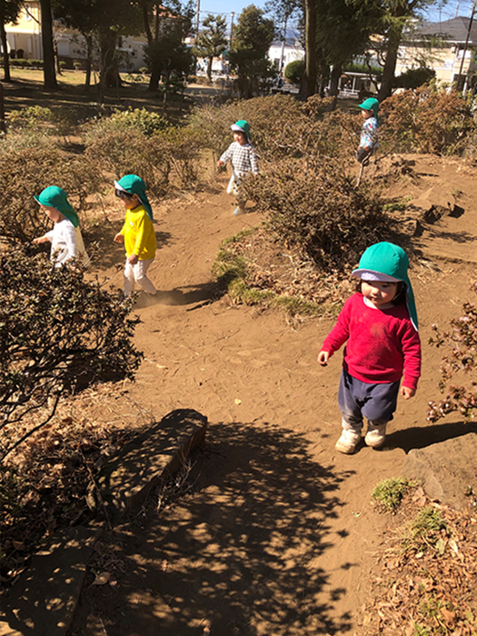 「おやまだ~」公園の小さな丘を登ったり下ったり、まつぼっくりも拾いました。